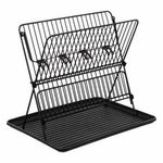 Najlepsza cenaOciekacz do naczyń Erica składany dwupoziomowy czarny metalowy z tacą na blat Atmosphera