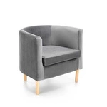 Fotel kubełkowy Kalmen welurowy szary skandynawski do salonu na drewnianych nogach