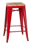 Najlepsza cenaHoker Paris Wood 65 cm czerwony industrialny metalowy z drewnianym siedziskiem do wyspy kuchennej