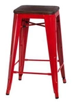 Najlepsza cenaHoker Paris Wood 65 cm industrialny czerwony metalowy z drewnianym siedziskiem do wyspy kuchennej