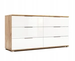 Najlepsza cenaOstatnie sztukiKomoda z szufladami Tissa 120 cm biała połysk dąb nowoczesna do salonu Intesi