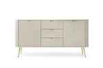 Najlepsza cenaKomoda Seda beżowa ryflowana z szufladami na złotych nogach nowoczesna do salonu