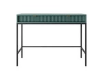 Nowoczesna toaletka Delicious zielona ryflowana z szufladami na czarnych nogach do sypialni
