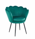 Kolejna propozycja to krzesło Kotte Velvet zielone. Stanowi ono ciekawą alternatywę dla tradycyjnych mebli typu muszelka. Jest bowiem pozbawione charakterystycznego otworu w oparciu. Podstawą mebla są 4 metalowe nogi wykonane z metalu malowanego proszkowo na czarno. Znajdujące się na ich końca złote zdobienie nadaje im eleganckiego wyglądu. Krzesło Kotte Velvet posiada wygodne, półokrągłe oparcie z delikatnymi marszczeniami oraz miękkie siedzisko z gąbką. Zostało ono obite wysokiej jakości, miłą w dotyku tkaniną welurową. Mebel świetnie sprawdzi u osób, którym potrzebne są krzesła w stylu glamour inspirowane designem rodem z lat 50. i 60. XX wieku.