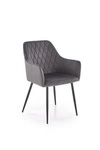 Krzesło tapicerowane welurowe Itzal szare do jadalni i salonu z podłokietnikami nowoczesne