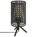 Lampka nocna Katel czarna metalowa z technorattanu do sypialni, nowoczesna lampa stołowa