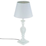 Najlepsza cenaLampka nocna do sypialni Leo Atmosphera biała klasyczna z abażurem i drewnianą podstawą 36 cm