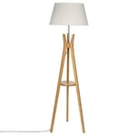 Lampa podłogowa Kalo trójnóg bambusowy z półką, skandynawska lampa stojąca do salonu