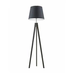 Najlepsza cenaLampa stojąca do salonu ARUBA czarna z abażurem drewniana trójnóg glamour Lysne 149 cm
