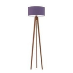 Najlepsza cenaLampa stojąca do salonu MIAMI trójnóg glamour z abażurem fioletowym i mahoniowym stelażem