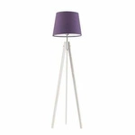 Najlepsza cenaLampa podłogowa trójnóg drewniana z abażurem fioletowym ARUBA do salonu i sypialni Lysne