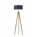 Najlepsza cenaLampa podłogowa trójnóg Aruba niebieska z abażurem dębowy stojąca do salonu Lysne