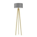 Najlepsza cenaLampa podłogowa drewniana trójnóg MIAMI Lysne z jasnoszarym abażurem do salonu, personalizowana