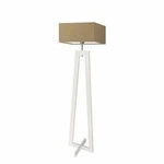 Lampa stojąca do salonu nowoczesna drewniana JAWA brązowy abażur biała podstawa Lysne 138 cm