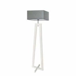 Lampa podłogowa JAWA szara z abażurem, nowoczesna drewniana do salonu i sypialni Lysne