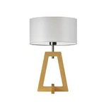 Najlepsza cenaLampka nocna Clio biała glamour z abażurem i dębową podstawą do sypialni lub salonu