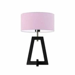Najlepsza cenaLampka nocna Clio glamour z abażurem jasny różowy i białą drewnianą podstawą do sypialni