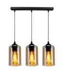 Najlepsza cenaLampa wisząca Bistro czarna z brązowym szklanym kloszem 3-punktowa do kuchni nad stół