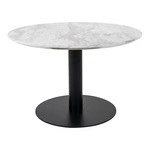 Stolik kawowy okrągły Bolzano 70cm biały marmur glamour z czarną metalową nogą do salonu Intesi