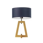 Najlepsza cenaLampka nocna Clio nowoczesna do sypialni granatowy abażur biały drewniany stelaż LYSNE
