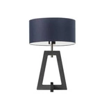 Najlepsza cenaLampka nocna do sypialni Clio nowoczesna z abażurem granatowym i drewnianą podstawą LYSNE