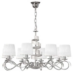Lampa wisząca glamour Denis 8-punktowa chrom białe abażury do salonu i jadalni regulowana