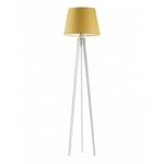 Lampa stojąca do salonu Curacao nowoczesna z abażurem musztardowym i dębowym trójnogiem
