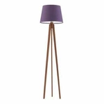 Lampa podłogowa Curacao nowoczesna z abażurem fioletowym i drewnianym trójnogiem do salonu