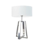 Najlepsza cenaLampka nocna do sypialni LYSNE THOR nowoczesna biała z abażurem na srebrnym stelażu 61 cm