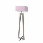 Lampa podłogowa JAWA nowoczesna drewniana z jasnoróżowym abażurem do salonu Lysne 138 cm