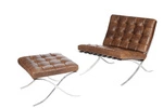 Fotel wypoczynkowy z podnóżkiem Ba1 inspirowany Barcelona skórzany brązowy do salonu