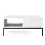 Najlepsza cenaStolik kawowy Delicious biały glamour z szufladą i półką do salonu, prostokątny 104x68 cm