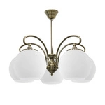 Lampa wisząca Orbit szklana klasyczna 5-punktowa do salonu i sypialni miedziana