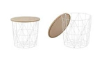 Stolik kawowy Skalba okrągły biały drewniany ze schowkiem nowoczesny skandynawski do salonu