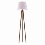 Lampa podłogowa Curacao nowoczesna z abażurem fioletowym i drewnianym trójnogiem do salonu