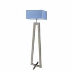 Lampa stojąca do salonu JAWA Lysne niebieska nowoczesna drewniana z abażurem 138 cm