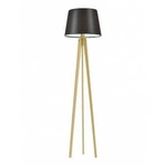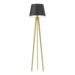 Lampa stojąca do salonu Curacao Lysne nowoczesna czarna z abażurem i drewnianym stelażem