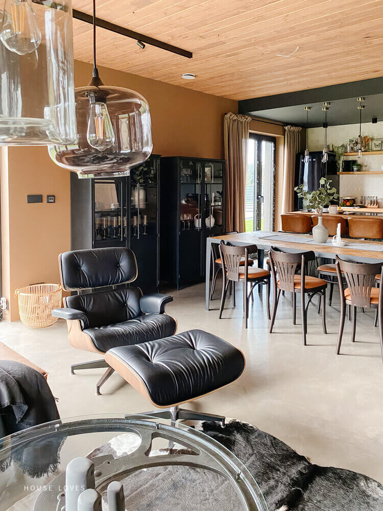 Fotel VIP to niewątpliwie przykuwający uwagę mebel. Jego potencjał dostrzegła architekt Karolina Zawadzka, która w swoim projekcie NYLOFT wykorzystała fotel VIP od DKwadrat. Projekt zachowany w stylu loftowym z nutą klimatu retro idealnie komponuje się z inspiracją Lounge Chair. Aranżacja zaproponowana przez Karolinę Zawadzką utrzymana jest w ciepłej kolorystyce, odcienie brązu przełamano kolorem czarnym, charakterystycznym dla stylu industrialnego. Zdecydowano się również na fotel VIP z czarnej skóry i sklejki w kolorze drewna orzechowego, który doskonale łączy się ze skórzaną sofą. Jeśli uwielbiasz ponadczasowe projekty, takie jak Lounge Chair, koniecznie sprawdź kolejną kultową inspirację jak sofa BA, inspirowana projektem Barcelona z 1929 roku. Aranżacja NYLOFT posiada posadzkę z mikrobetonu, dobrze znanego elementu industrialnego oraz ścianę z wykorzystaniem cegły, a także bardzo oryginalny sufit z drewnianych paneli. W salonie z fotelem VIP znalazła się również szklana loftowa ścianka. Warto zauważyć, że fotel VIP ze względu na swój rozmiar sprawdzi się jednak lepiej w przestrzeniach o nieco większym metrażu lub w otwartych pomieszczeniach, takich jak salon połączony z jadalnią. Istnieje również możliwość zakupu samego fotela VIP bez dołączonego podnóżka lub samego podnóżka, jeśli choć w niewielkim stopniu chcemy poczuć klimat projektu małżeństwa Eamesów. Jak pisze sama autorka: “dekoracje i dodatki w tym wnętrzu są raczej symboliczne”. Sprawdzi się tu obraz, zegar w industrialnym stylu i dywan z retro motywem, na przykład imitujący skórę – takie dodatki doskonale dopełnią skórzany fotel VIP i sofę. Jednak odnajdą się tu również dywany z innymi motywami, na przykład motywem perskim. W loftowych aranżacjach dużą rolę odgrywa również oświetlenie stylizowane na to z czasu okresu postfabrycznego, które pomoże wprowadzić do wnętrza surowy klimat. Fotel VIP to wspaniały mebel z historią, który doda uroku każdej aranżacji.