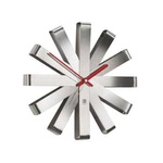 WyprzedażOstatnie sztukiZegar ścienny nowoczesny Umbra Ribbon srebrny 30 cm cichy do salonu lub sypialni