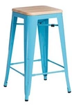 Najlepsza cenaHoker Paris Wood 65 cm niebieski industrialny metalowy z drewnianym siedziskiem do wyspy kuchennej