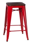Najlepsza cenaHoker Paris Wood 65 cm czerwony industrialny metalowy z drewnianym siedziskiem do wyspy kuchennej