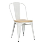 Krzesło do jadalni Paris Wood białe metalowe z drewnianym siedziskiem industrialne D2.DESIGN