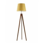 Najlepsza cenaLampa podłogowa drewniana ARUBA musztardowa trójnóg z abażurem do salonu Lysne 149 cm