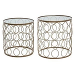 Najlepsza cenaOstatnie sztukiZestaw 2 okrągłych stolików kawowych Archi złoty szklany glamour do salonu Atmosphera