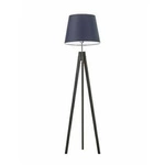 Najlepsza cenaLampa stojąca do salonu Aruba granatowa z abażurem drewniana trójnóg glamour Lysne 149 cm