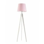 Najlepsza cenaLampa podłogowa stojąca do salonu Aruba trójnóg drewniana z abażurem różowym Lysne 149 cm
