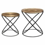 Najlepsza cenaZestaw 2 okrągłych stolików kawowych Etnik loft złoty czarny do salonu Atmosphera