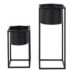 Najlepsza cenaZestaw 2 metalowych kwietników stojących Marla czarnych nowoczesnych do salonu