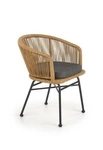 Najlepsza cenaKrzesło rattanowe Raffu do jadalni z podłokietnikami i szarą poduszką na metalowych nogach