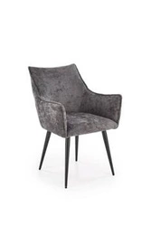 Krzesło tapicerowane Arhiza szare z podłokietnikami do jadalni nowoczesne na czarnych nogach